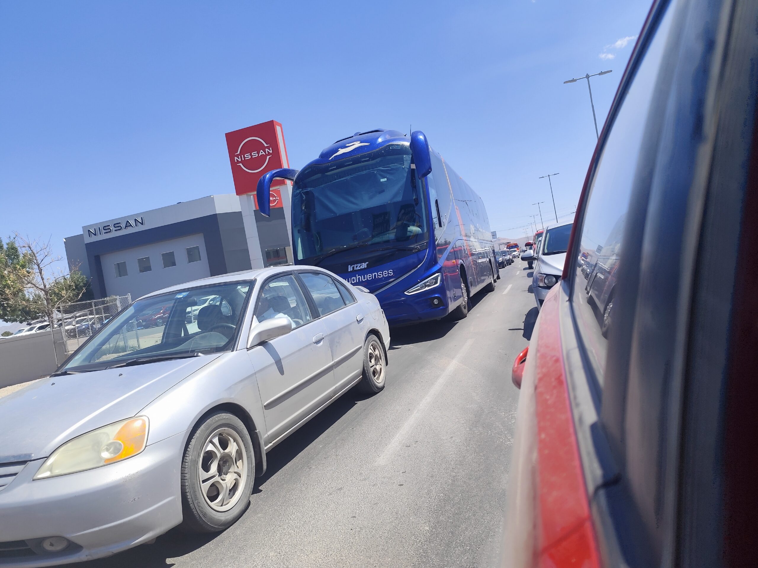 Chihuahua, Chih.- Ciudadanos expresaron sus molestias en las largas filas que se crean en el Blvd. Juan Pablo II y Av. Pacheco, ya que los trabajos que se