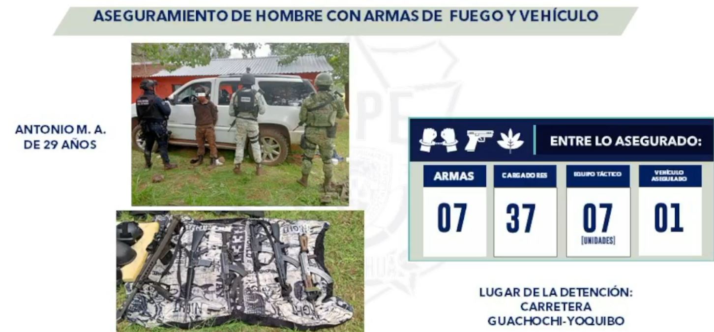 Chihuahua, Chih.- El secretario de Seguridad Pública del Estado, Gilberto Loya Chavez, informó que en distintos operativos se logró el aseguramiento de 7 personas, en Cuauhtemoc y Guachochi.