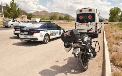 Chihuahua, Chih.- Con lesiones de consideración resultó un motociclista luego de que una tarima de plástico lo embistiera mientras circulaba sobre la Vialidad Sacramento. Al principio se había