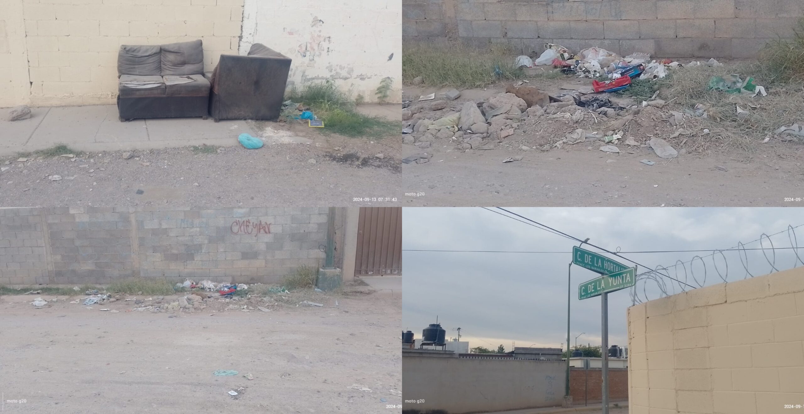 Chihuahua, Chih.- Residentes del Fraccionamiento Los Naranjos, en la intersección de las calles Hortaliza y Yunta, reportan que tras las recientes lluvias, la tierra arrastrada tapó la carpeta