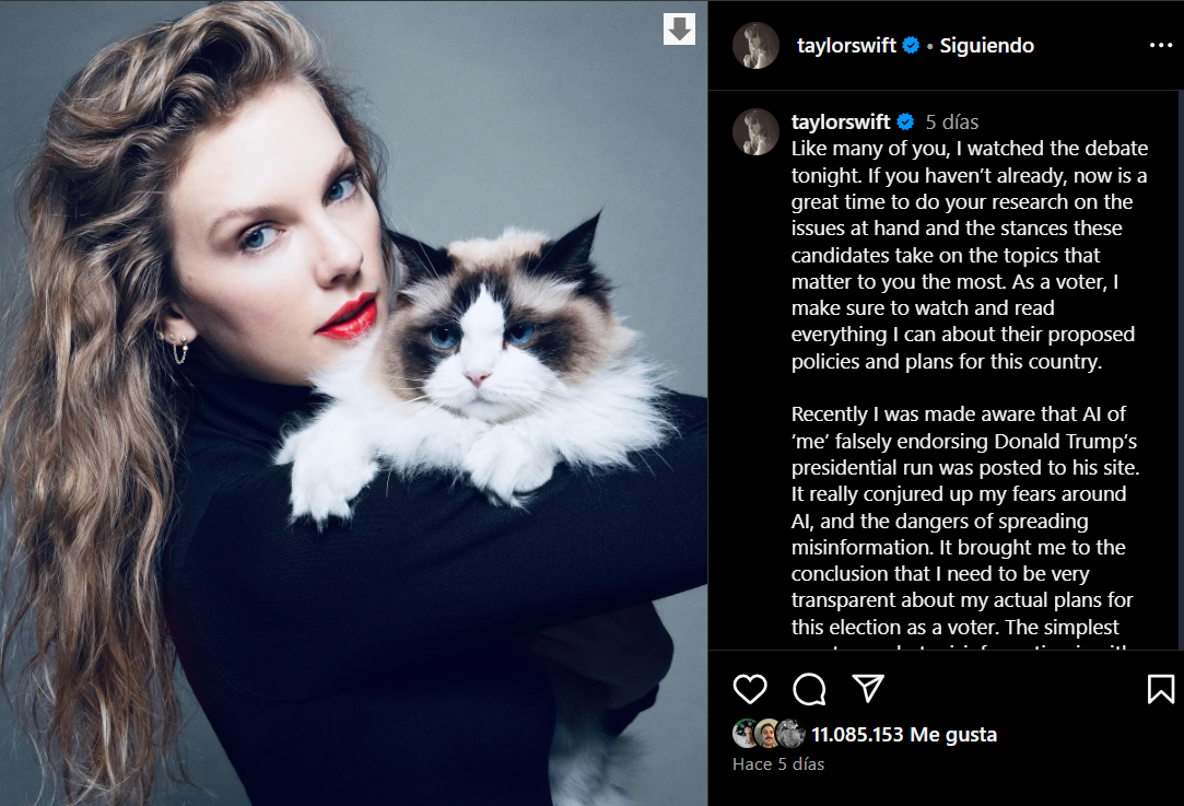 El respaldo de las celebridades rara vez tiene un peso decisivo en una elección, pero la enorme popularidad de Swift es vista como única en su clase, con cerca de 500 millones de seguidores en las redes sociales.