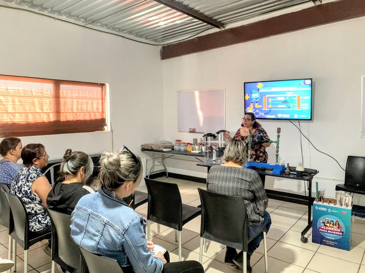 La Junta Municipal de Agua y Saneamiento (JMAS) de Chihuahua, impartió el curso “Plomería para Mujeres” a personal de Comunidad y Familia de Chihuahua A. C. (Cofam), así como a mujeres emprendedoras de Riberas de Sacramento.