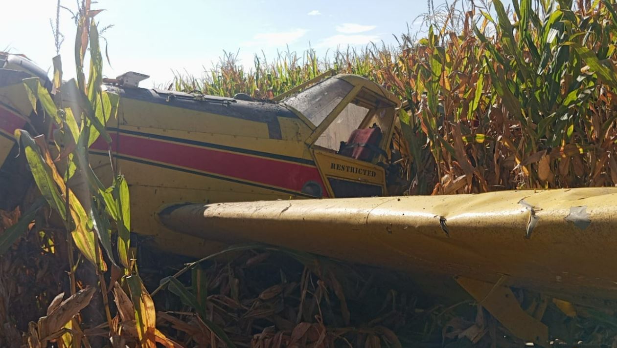 Chihuahua, Chih.- Durante la mañana de este viernes, una avioneta realizó un aterrizaje forzoso en tierras de cultivo de maíz, ubicadas en la brecha entre los campos 4B