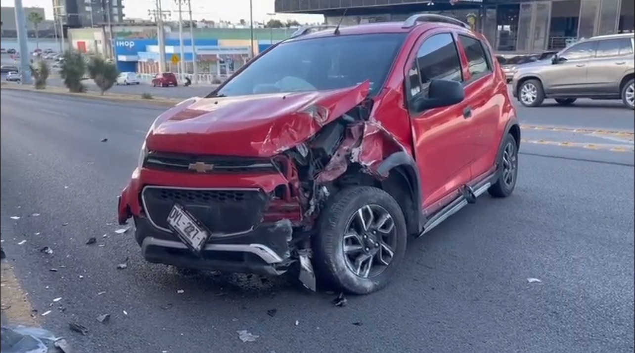 Chihuahua, Chih. – Una mujer resultó ilesa tras un fuerte accidente en el que destrozó su automóvil compacto al estrellarse contra el muro del Periférico de la Juventud.