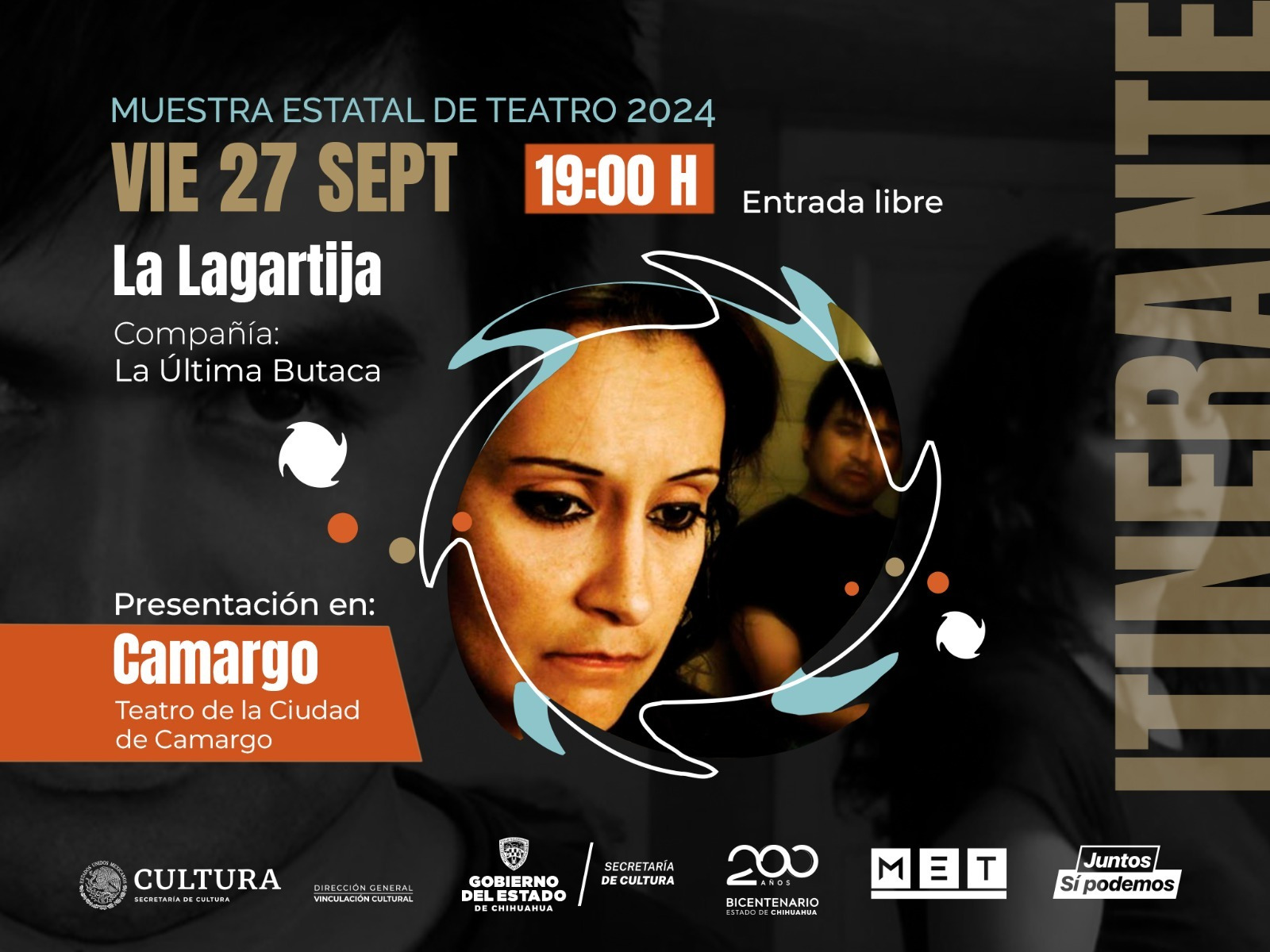 A Camargo viajará la compañĂa juarense “La Ăşltima Butaca”, donde presentarán la obra “La lagartija”. La cita es en el teatro de Camargo a las 19:00 horas.