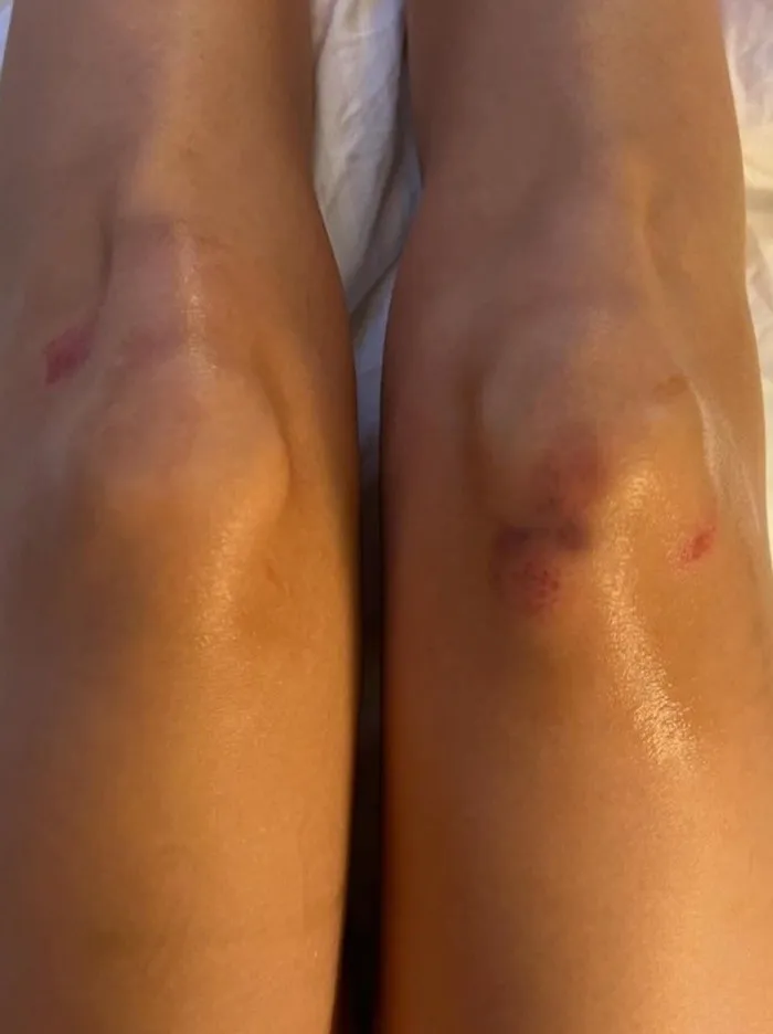 Belinda compartió en redes sociales los moretones que le quedaron tras una caída en la pasarela de la Semana de la Moda en París.