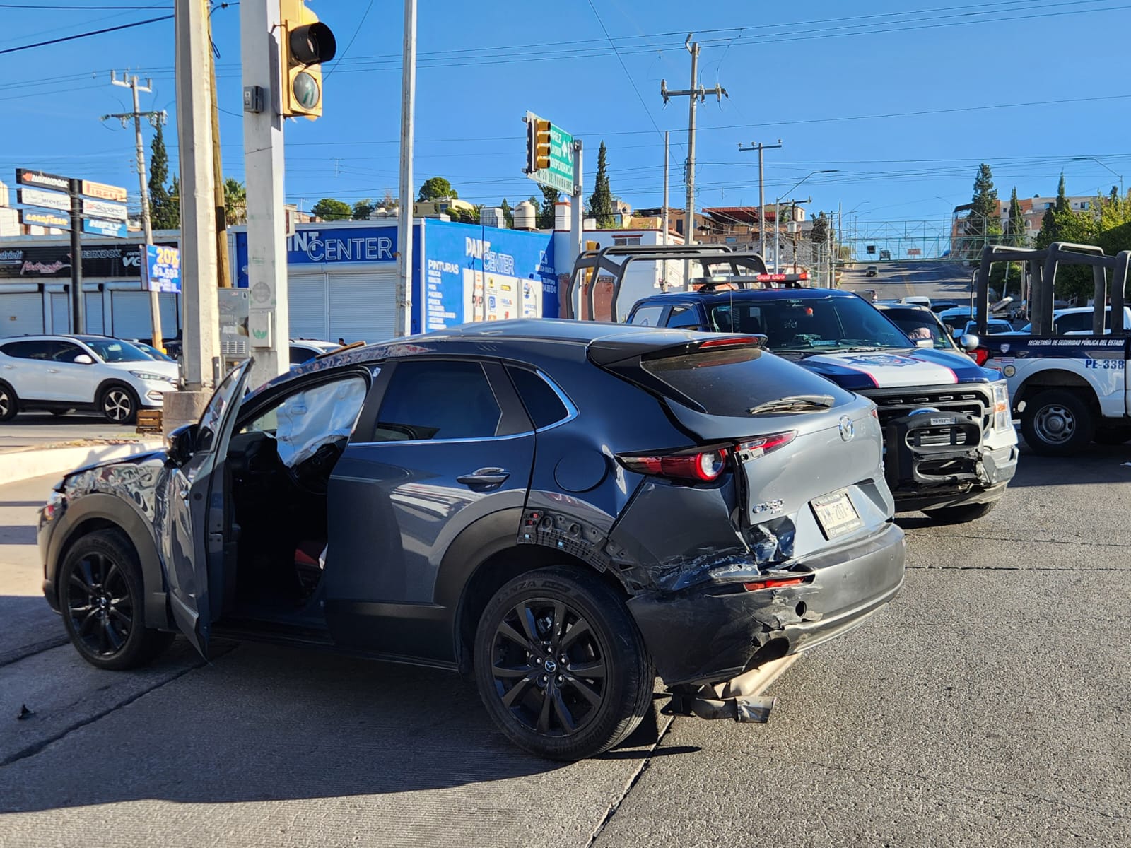 Chihuahua, Chih.- Durante la mañana de este lunes se reportó un accidente vial entre una patrulla y un automóvil en el centro de la ciudad de Chihuahua. Los