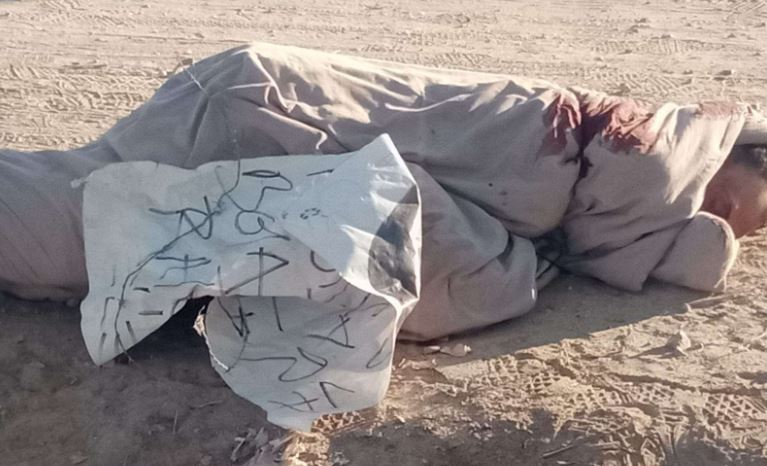 Chihuahua, Chih– El cuerpo sin vida de un hombre fue localizado esta mañana en la colonia Riveras del Bravo, envuelto en una cobija gris y acompañado de un