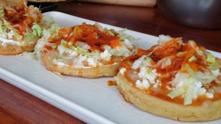 - Sopes de cempasúchil: Una base de masa de maíz con salsa y flor.