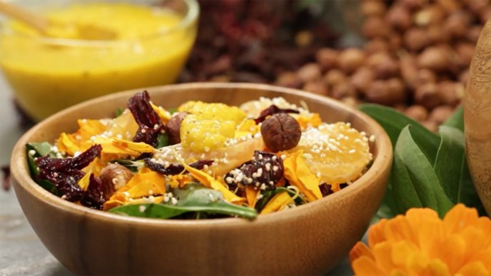 - Ensalada fresca: Mezcla de vegetales con pétalos de cempasúchil para un toque colorido.