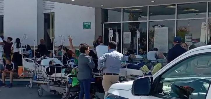 En una escena dantesca, decenas de pacientes en camillas fueron sacados a las banquetas por el riesgo de intoxicación que podrían sufrir al interior del hospital.