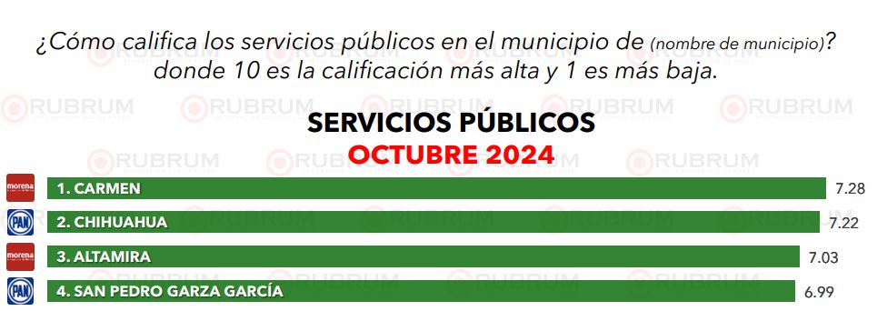 Chihuahua, Chih.- Al corte del 16 de octubre, la casa encuestadora Rubrum publicó los resultados de su más reciente medición sobre el desempeño de los alcaldes a nivel