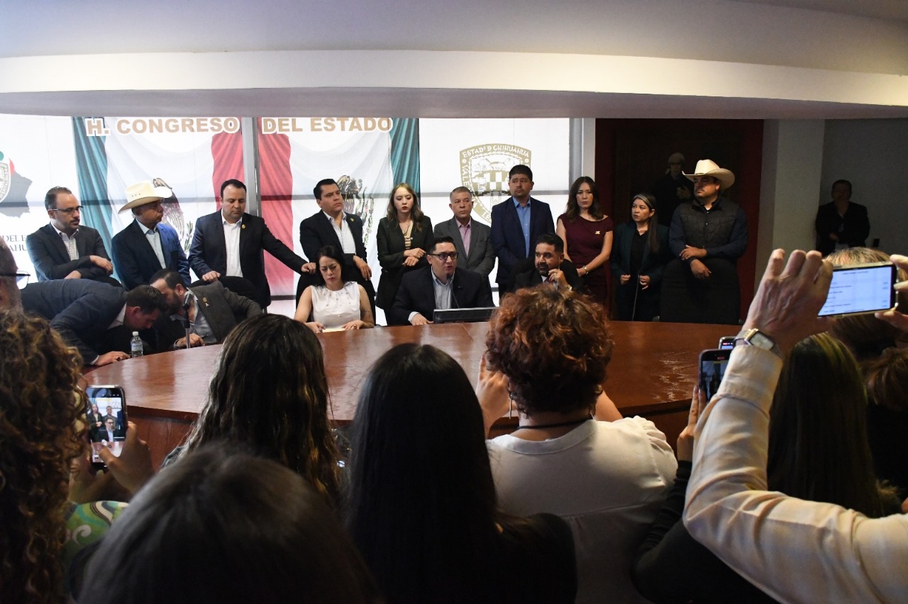 Esta rueda de prensa se llevó a cabo debido a que los diputados locales de Morena tomaron la tribuna del Congreso del Estado y frenaron la discusión del exhorto propuesto, lo que impidió que se debatiera durante la sesión legislativa.
