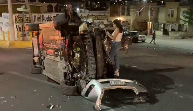Chihuahua, Chih. – Un joven lesionado con heridas leves fue el resultado de una volcadura que por segundo día consecutivo se presenta en el periférico de la Juventud.