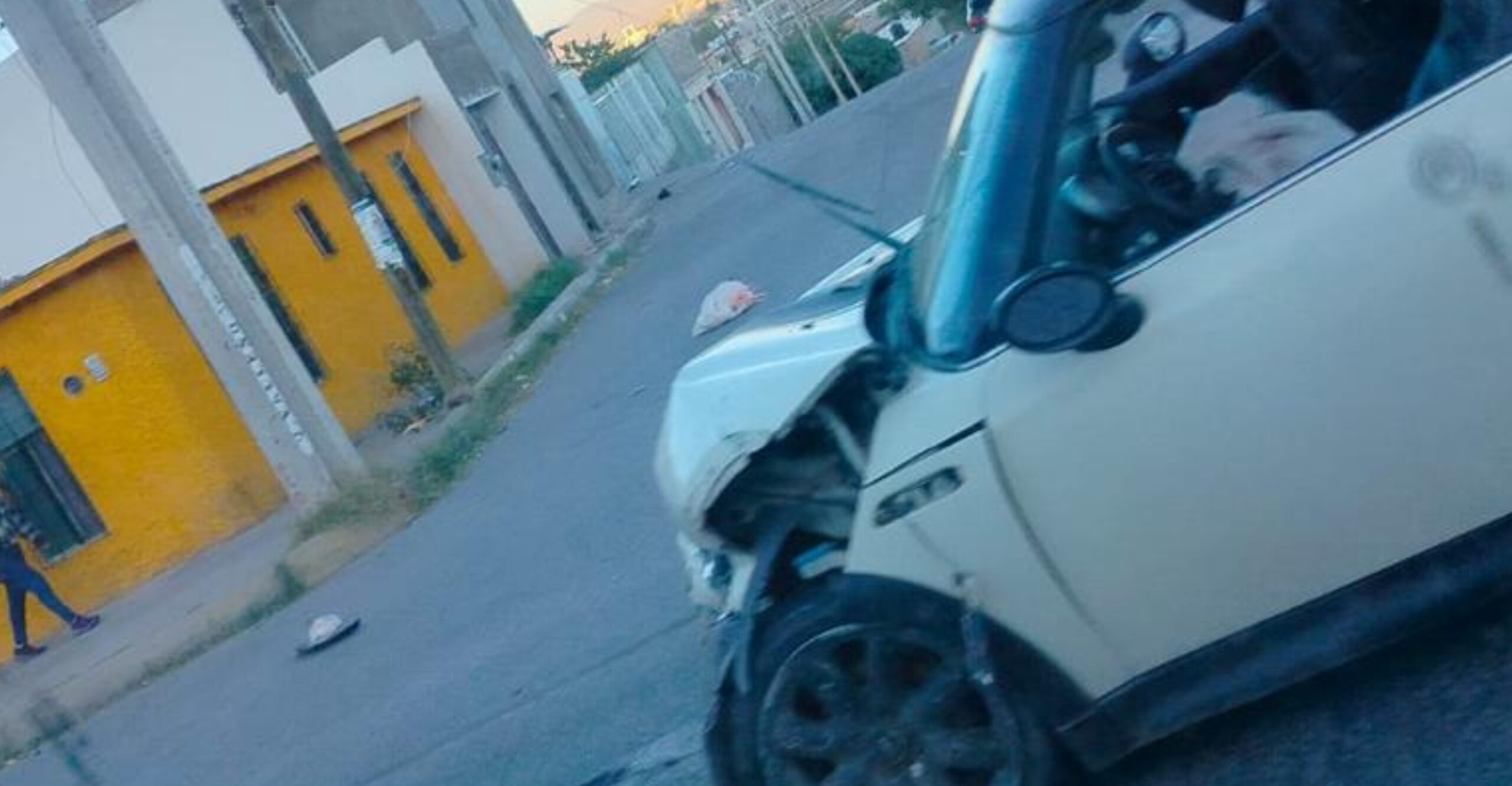 Chihuahua, Chih.- Un fuerte encontronazo entre un Mini Cooper y un Nissan se registró esta tarde en la intersección de la calle Samaniego y calle 80. Ciudadanos que