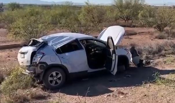 Chihuahua, Chihuahua. La mañana de este miércoles se registró una volcadura en el kilómetro 23 de la carretera Aldama, en la que un vehículo de la marca Chevrolet perdió el control y se estrelló contra un poste de la Comisión Federal de Electricidad (CFE) antes de volcarse.