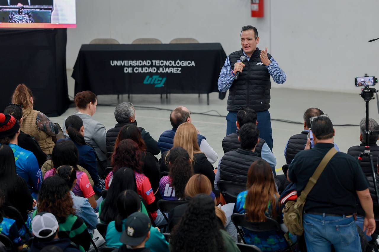 Al finalizar, el alcalde Marco Bonilla ofreció una plática a la comunidad estudiantil de la UTCJ, como parte del programa “Alcalde en tu Universidad”, para exponerles algunos de los programas y acciones del Gobierno Municipal de Chihuahua, que se han implementado para mejorar la calidad de vida de las familias.