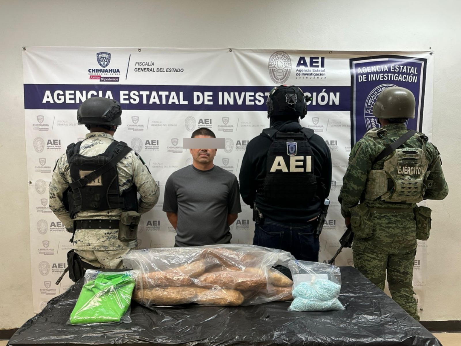 Chihuahua, Chih.- Elementos de la Agencia Estatal de Investigación, detuvieron en los términos de la flagrancia, a Rigoberto A. V., por su presunta responsabilidad en delitos contra la
