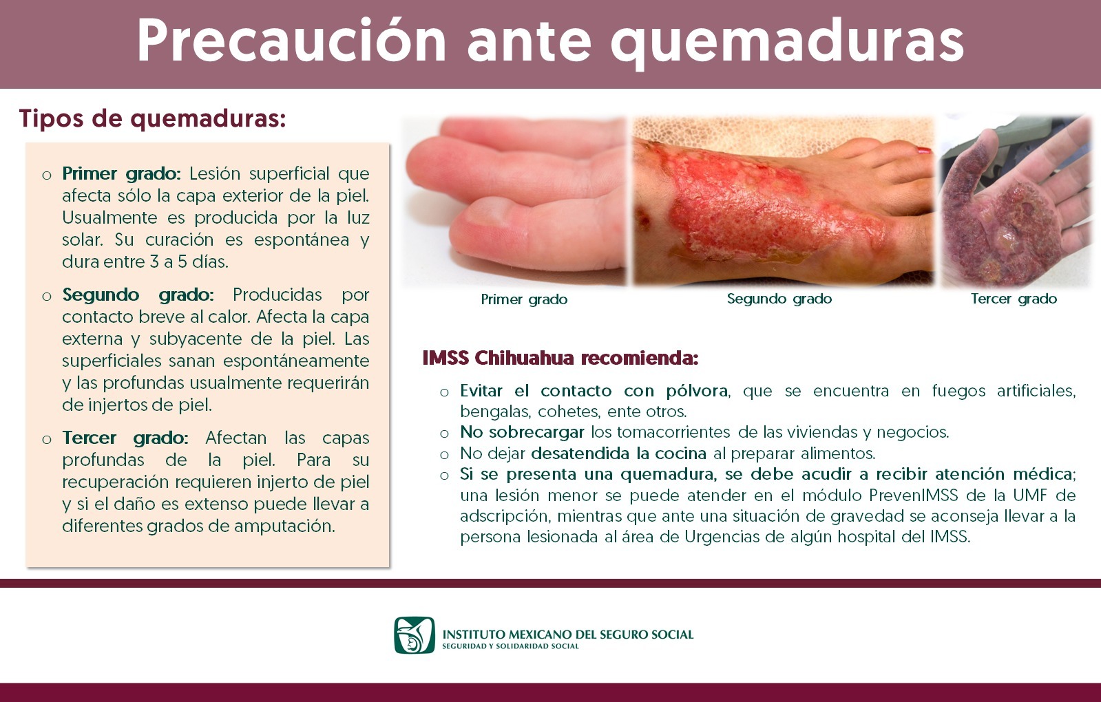 • Lo principal es prevenir accidentes, evitar el contacto con fuegos artificiales, bengalas, cohetes; no sobrecargar los tomacorrientes eléctricos y no dejar desatendida la cocina al preparar alimentos.