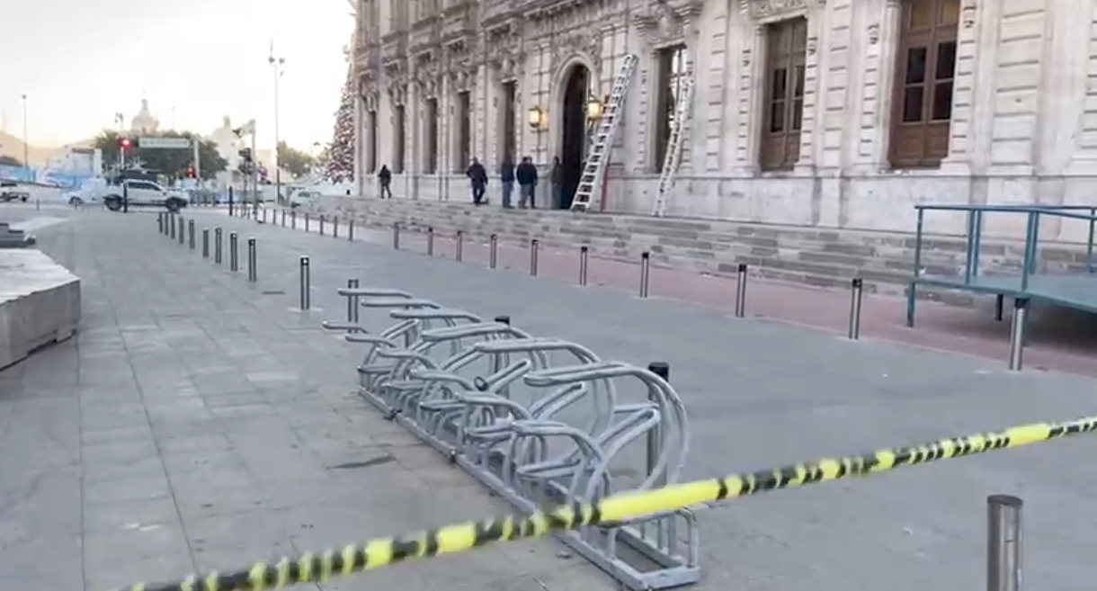 Chihuahua.- Las entradas de Palacio de Gobierno fueron acordonadas por elementos de la Policía Municipal debido a una fuga de gas en la línea general. Hasta el momento