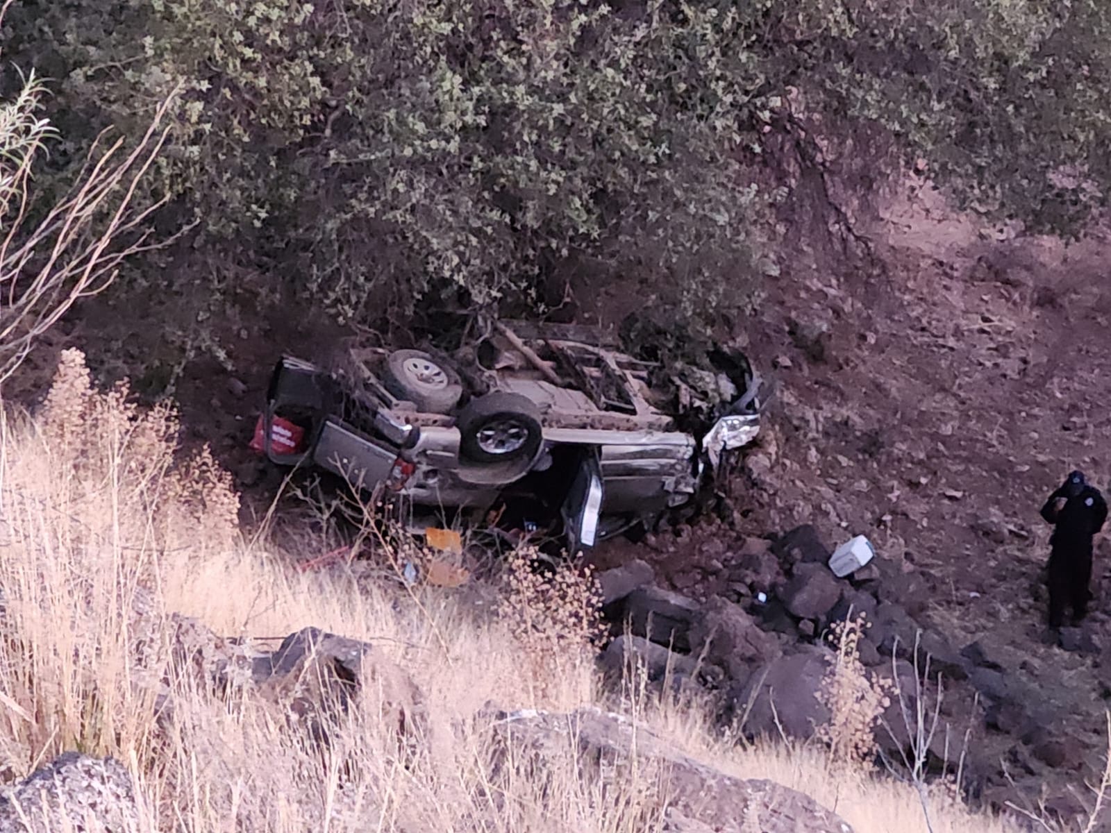 Acto seguido, una camioneta Chevrolet intentó maniobrar para evitar al primer auto y al objeto en la carretera, pero terminó saliéndose del camino y precipitándose a un barranco de 45 metros de profundidad.