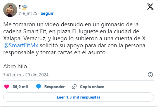 Un joven denunció públicamente haber sido víctima de grabaciones no autorizadas mientras se encontraba en los vestidores de un gimnasio de la cadena Smart Fit, ubicado en la plaza El Juguete, en Xalapa, Veracruz.