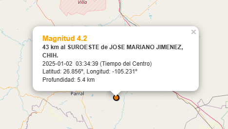 Chihuahua, Chih.- La madrugada del jueves comenzó con un sismo que sacudió ligeramente el sureste del estado de Chihuahua. Según el Servicio Sismológico Nacional (SSN), el fenómeno telúrico,