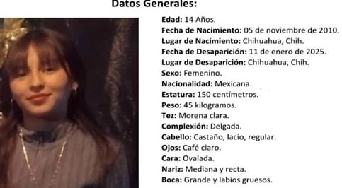 Chihuahua, Chih. – La Fiscalía General del Estado solicita el apoyo de la ciudadanía para localizar a Joseline Victoria Cárdenas Rivero, una menor de 14 años que fue