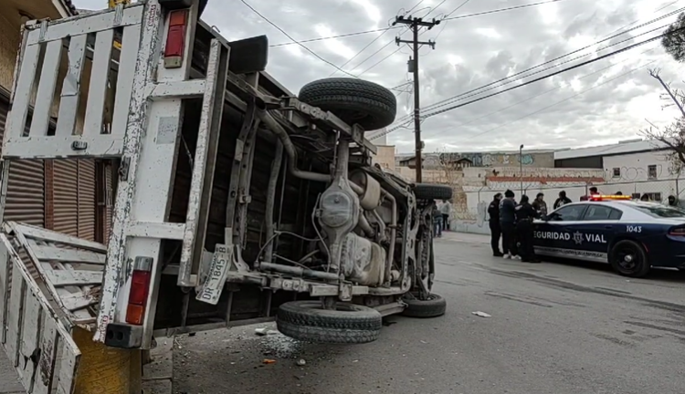 Juárez – Una fuerte volcadura se registró sobre las calles Ramon Corona cruce con Ignacio de la Peña, en la zona centro de ciudad Juárez. Según el reporte