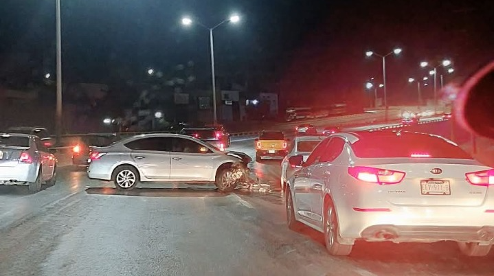 Chihuahua, Chih.- Un fuerte accidente ocurrió durante la mañana de este lunes en el Periférico de la Juventud y Calle Egipto en sentido Sur a Norte ocasionando daños