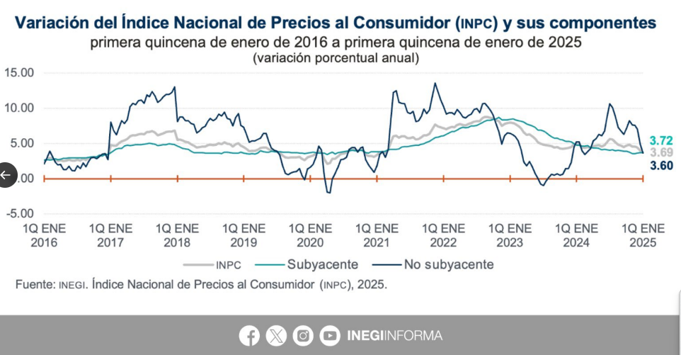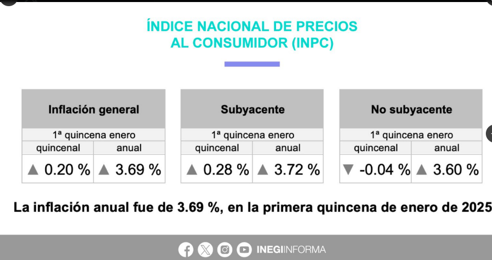 Inflación al 3.69 % en la primera quincena del año: INEGI