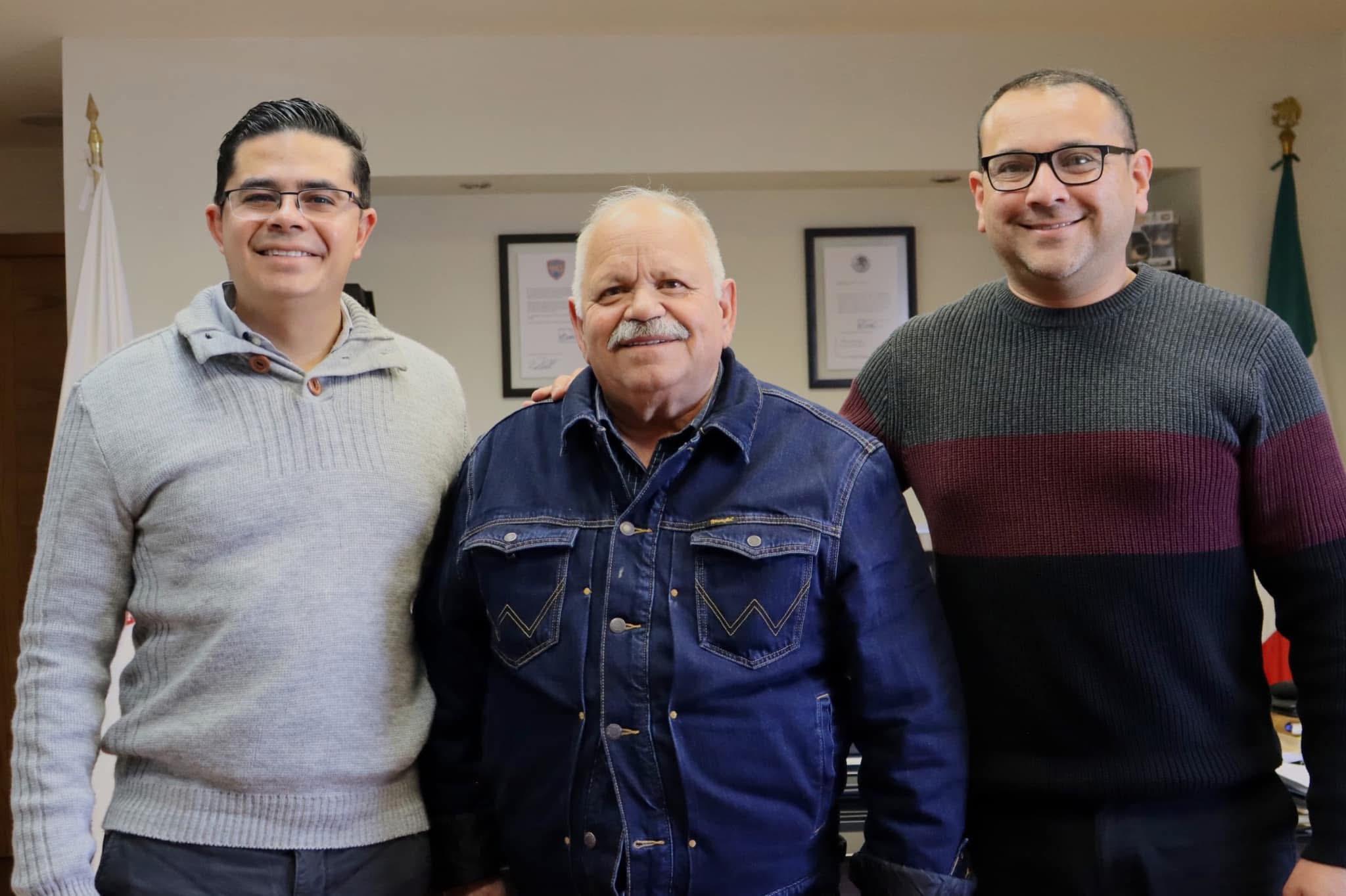 Chihuahua, Chih.- El alcalde de Manuel Benavides, Leonel Galindo Carrasco, y Jorge Puentes, de la Coordinación de Desarrollo Municipal del Gobierno del Estado, quienes sostuvieron una reunión para