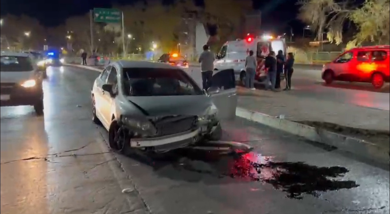 Chihuahua, Chih.- Un conductor que traía la nave con nitro terminó estampado contra el muro de contención en La Cantera, dejando dos pasajeros heridos y la ranfla con