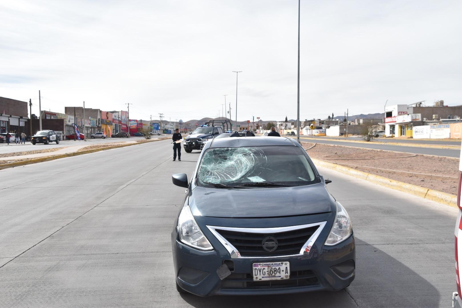 Chihuahua, Chih.- Un jovencito intentó cruzar la avenida Guillermo Prieto Luján, casi al cruce con Anthony Quinn, en una zona sin paso peatonal, y terminó siendo proyectado varios metros por un Nissan Versa.