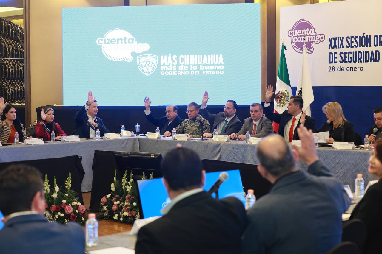 Asimismo, durante el evento, el alcalde Marco Bonilla tomó protesta como miembro del Consejo Estatal de Seguridad, junto con otros 12 homólogos de los municipios de Ciudad Juárez, Cuauhtémoc, Parral, Delicias, Camargo, Ojinaga, Jiménez, Guachochi, Bocoyna, Madera, NCG y Guadalupe y Calvo.