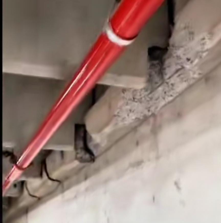 De acuerdo con fuentes extraoficiales, tras una revisión técnica, descubrieron que una de las principales trabes está dañada y con riesgo de colapso.