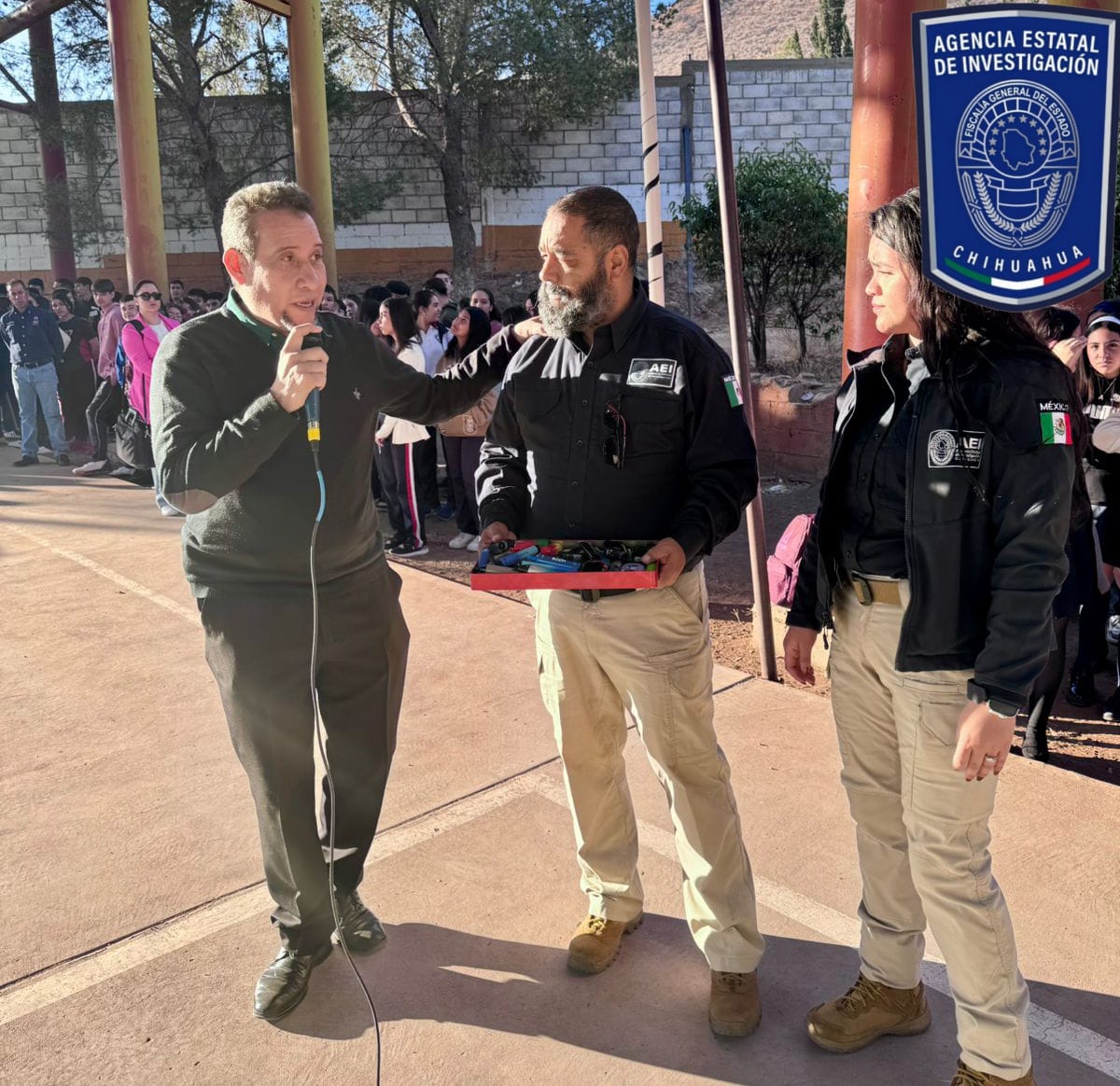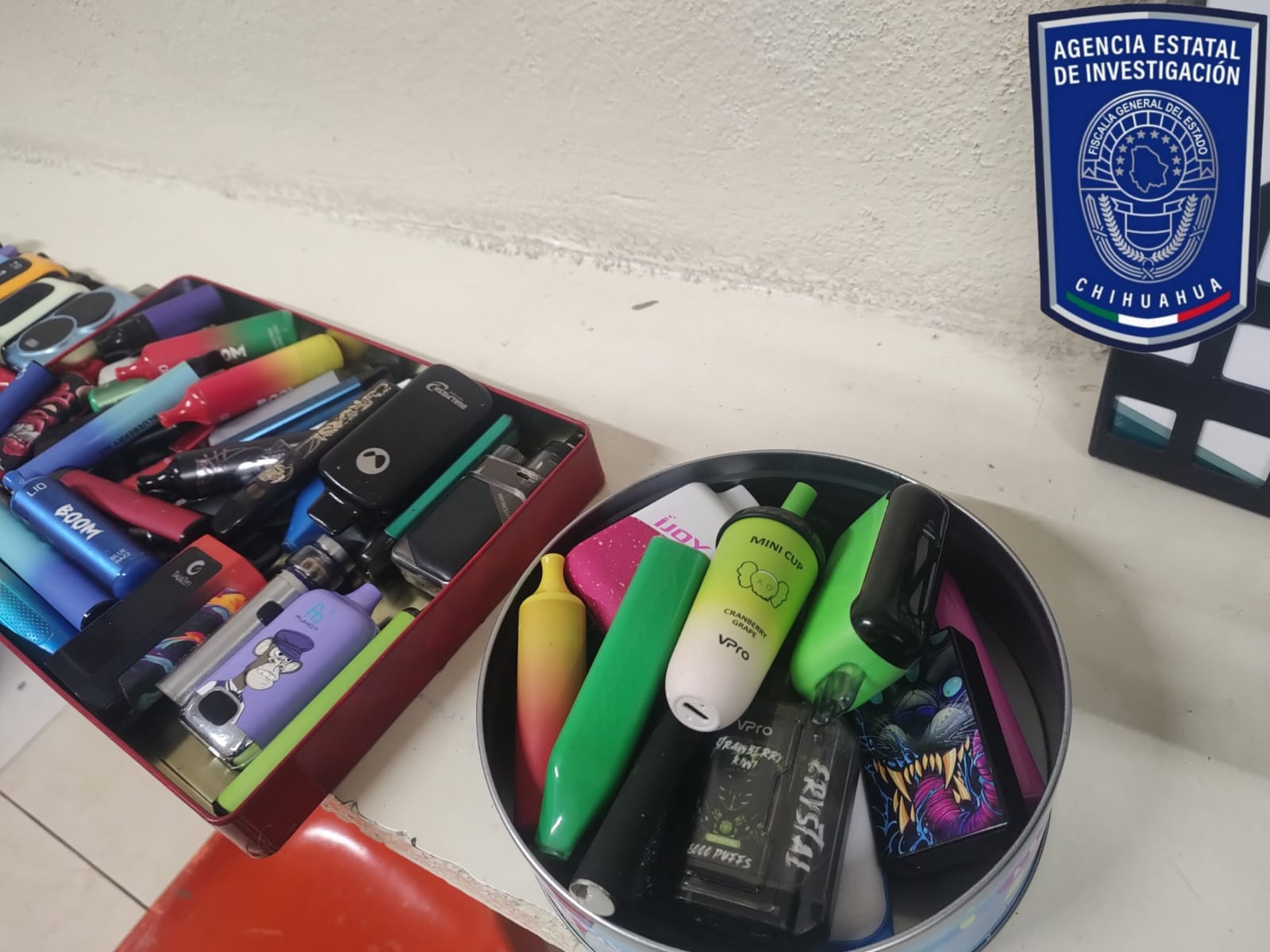 Parral, Chihuahua – En el marco de la estrategia de prevención implementada por el Grupo de Orientación Escolar Chihuahuense (GOECHI) de la Agencia Estatal de Investigación, se realizó el aseguramiento de 70 vapeadores en la escuela secundaria “Valentín Gómez Farías” de Hidalgo del Parral.