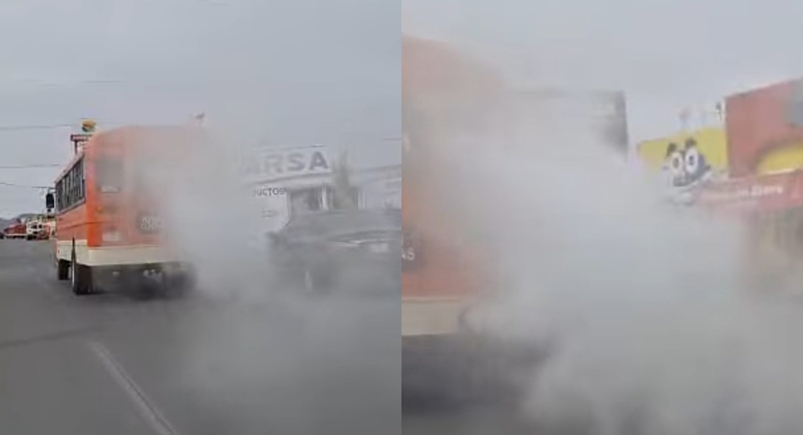 Chihuahua, Chih.- Un video difundido en redes sociales muestra a un camión maquilero circulando desde Riberas de Sacramento mientras emite una gran cantidad de gases de escape. Ciudadanos