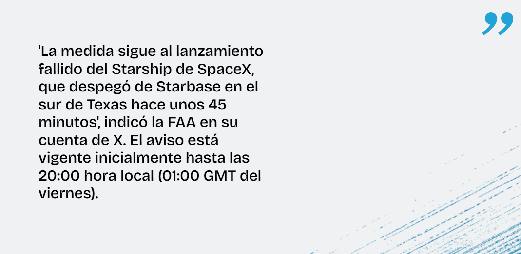 Las autoridades de Estados Unidos suspendieron temporalmente vuelos en Florida tras detectar restos de la nave Starship de SpaceX, la cual se perdió en su última misión, generando preocupaciones sobre la seguridad aérea.