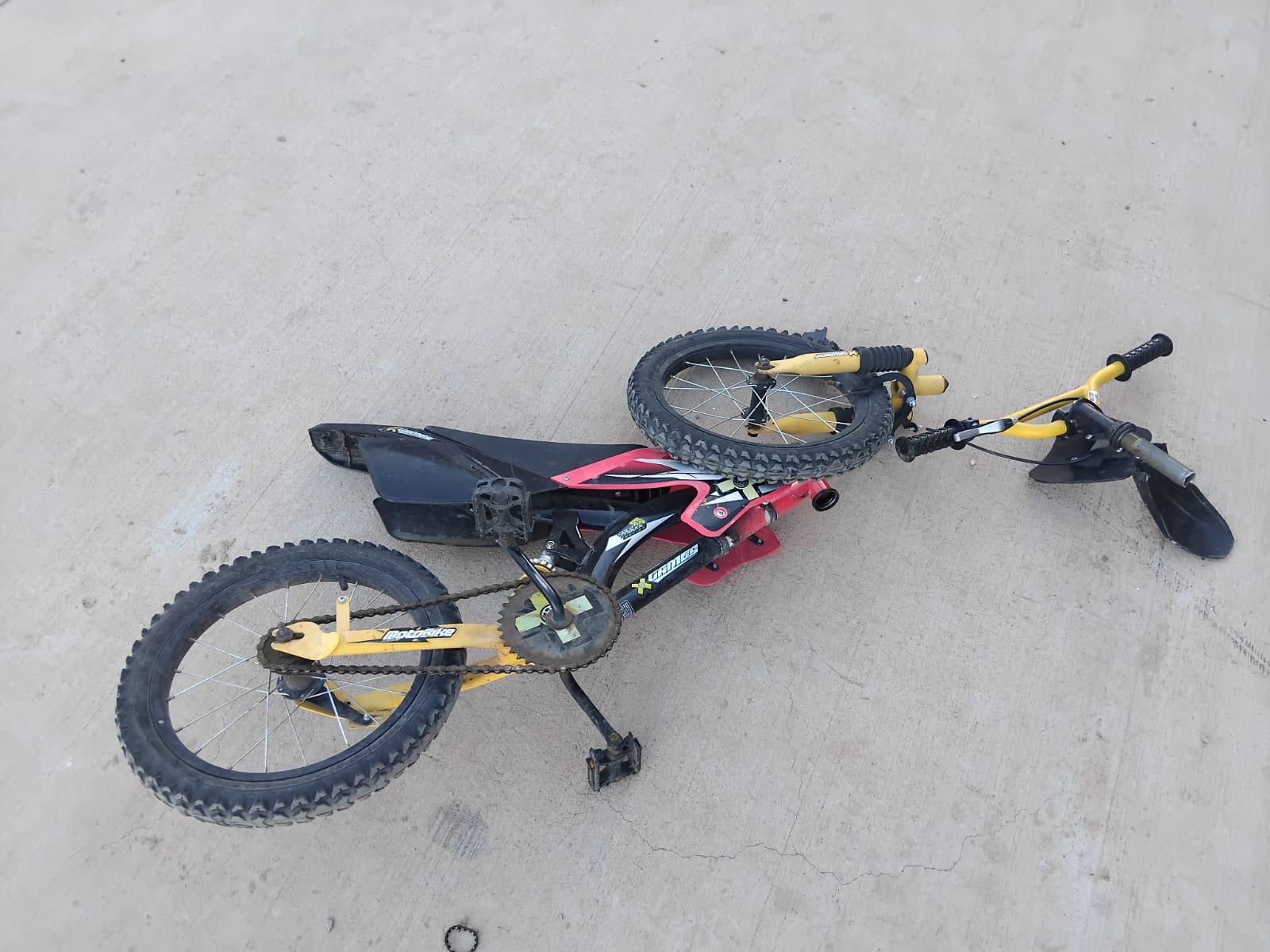 Testigos informaron que el niño jugaba con otros tres menores en bicicleta cuando descendió por una pendiente pronunciada, perdiendo el control y colisionando contra un muro de rocas retenidas con malla de alambre.