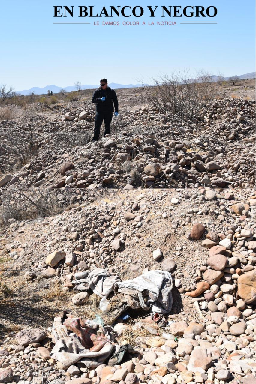 Chihuahua, Chih.- Un hombre que buscaba su ganado en un terreno de la colonia Ribera de Sacramento encontró supuestos restos humanos entre montones de tierra y alertó a