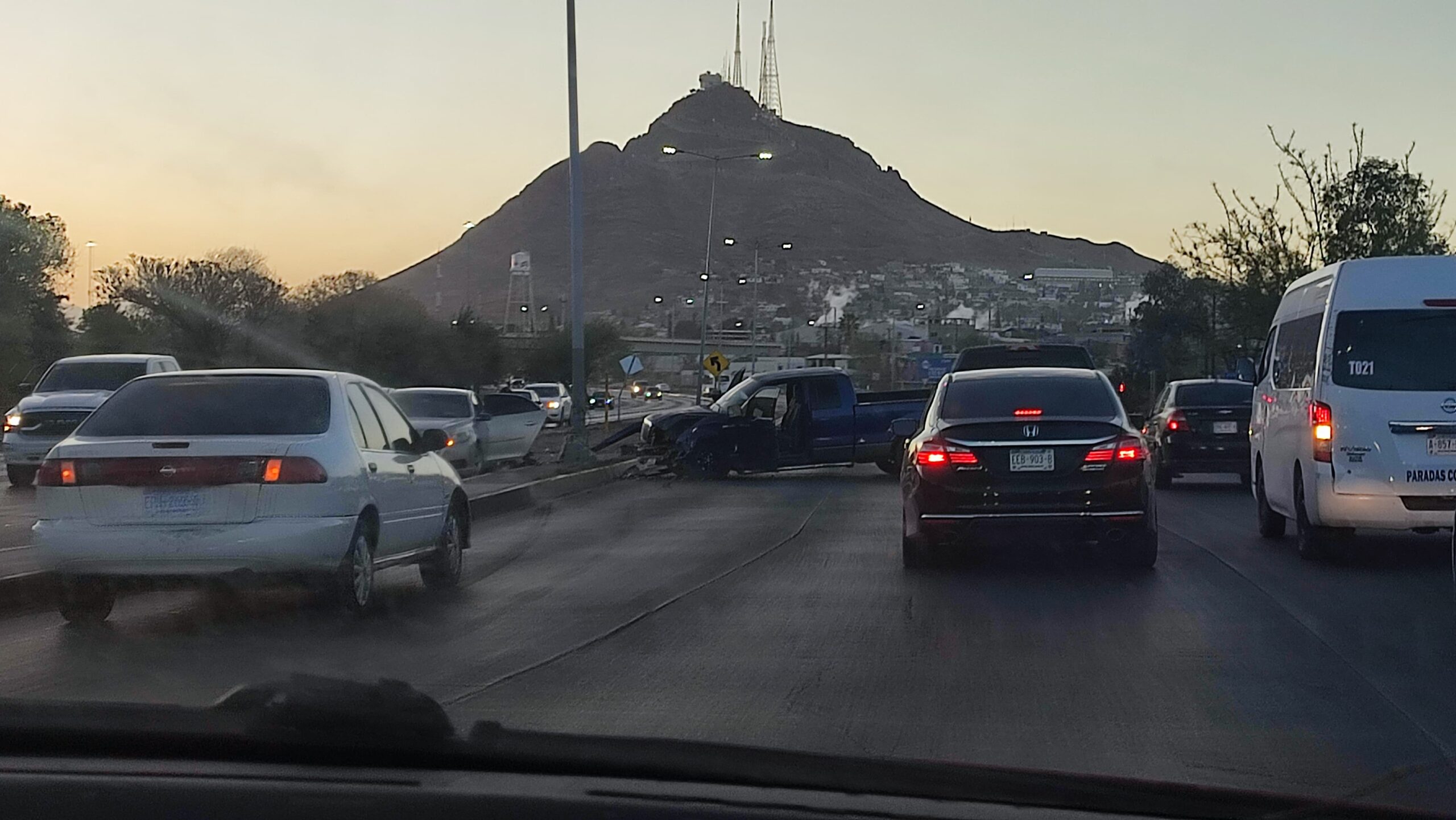 Chihuahua, Chihuahua.- Un fuerte accidente se registró en la Vialidad Sacramento, a la altura del Parque Industrial, cuando un conductor perdió el control de su vehículo pick up,