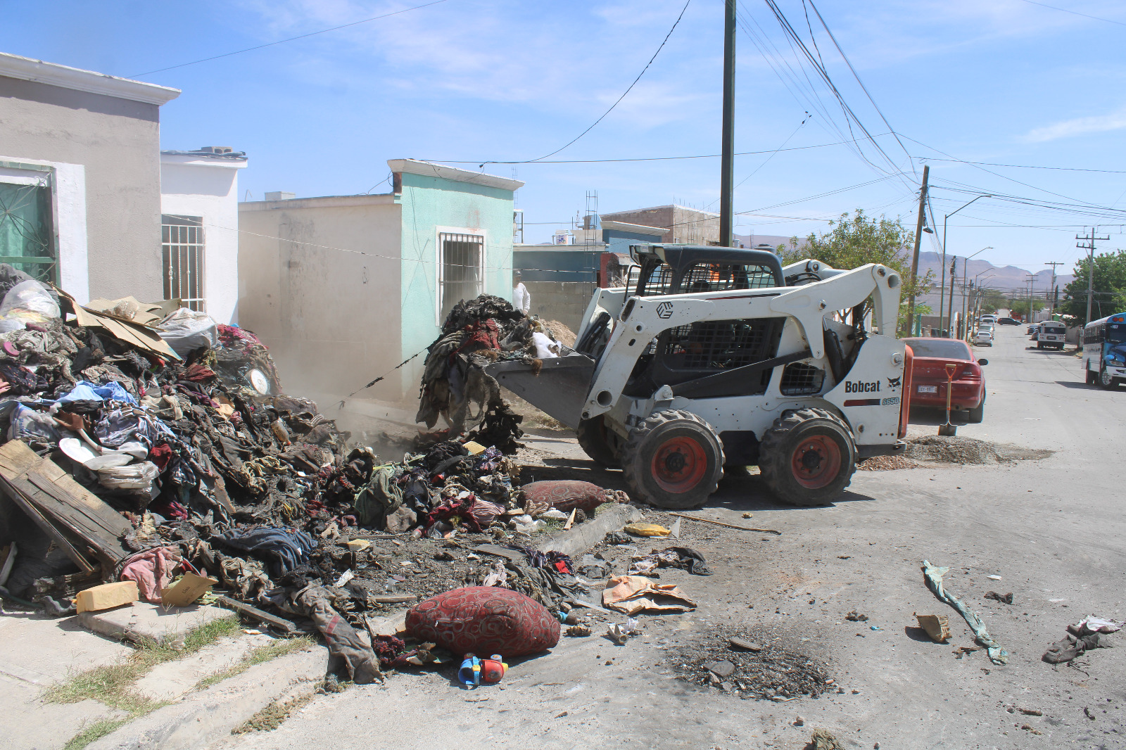 H. Ciudad de Chihuahua, Chih. A 8 de abril de 2025.- El Gobierno Municipal, a través de la Dirección de Servicios Públicos Municipales, llevó a cabo la limpieza de tres viviendas que sufrieron daños por incendios, de donde se retiraron un estimado de 56 toneladas de objetos dañados y basura.