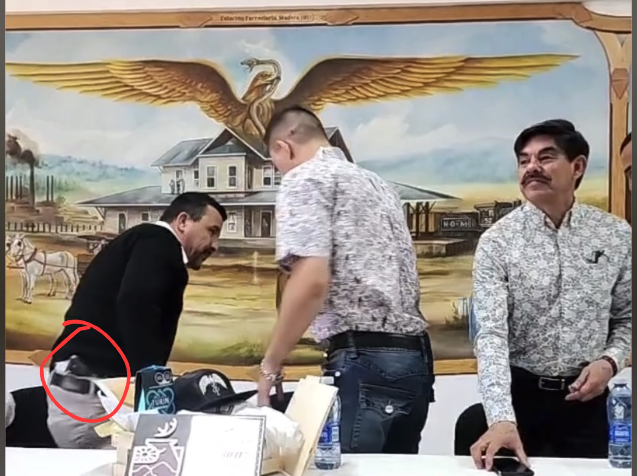 Arnoldo Jáquez Pérez, presidente municipal de Madera por el partido Morena, fue captado portando un arma de fuego durante un evento público, aparentemente sin portar visible de arma,