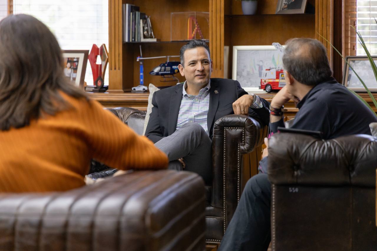 H. Ciudad de Chihuahua, Chih., a 6 de mayo de 2025.- El alcalde Marco Bonilla se reunió con el vicario de Sisoguichi, Héctor Fernando Martínez, quien impartirá a funcionarias y funcionarios del Gobierno Municipal un Taller de Interculturalidad con el que se busca abonar a la inclusión en cuanto a la atención de personas de pueblos originarios.