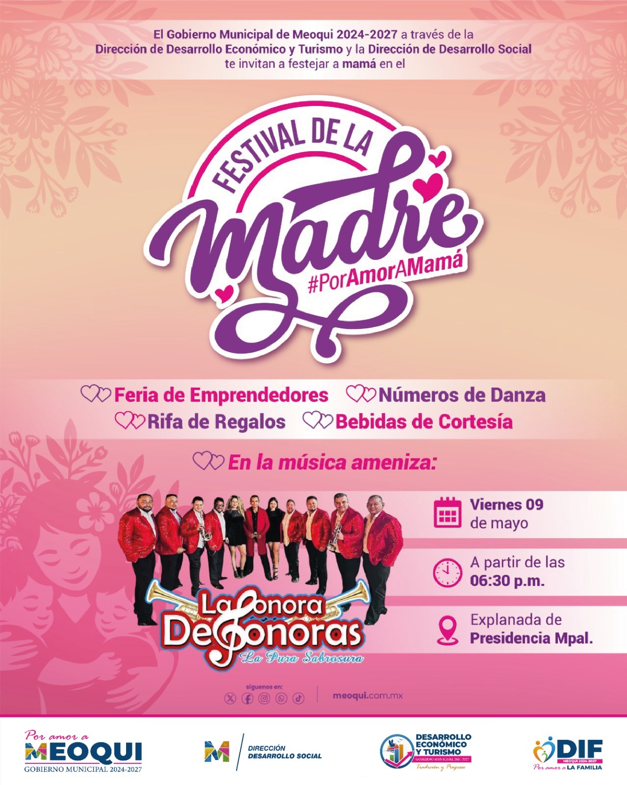 Meoqui – El Gobierno Municipal de Meoqui invita a las mamás a festejar su día hoy en la Plaza Principal a partir de las 6:30 de la tarde
