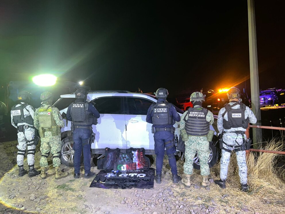 Tras su captura, se desplegó un operativo que permitió localizar una camioneta abandonada con armamento y chalecos balísticos con las siglas del CJNG, en el tramo Juventino Rosas–La Ordeña. El material quedó bajo resguardo del Ministerio Público.
