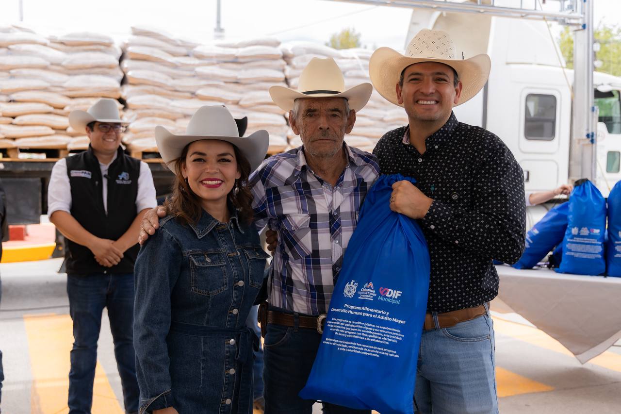 Además del apoyo a los ganaderos de El Sauz y de todos los seccionales rurales del municipio, la presidenta del DIF Municipal, Karina Olivas, inició la entrega de los paquetes del Programa Alimentario del Adulto Mayor (PAAM), que en esta convocatoria entregaron a los 115 habitantes de esta comunidad que hicieron su solicitud.