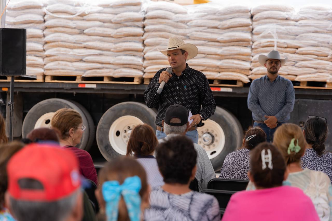 En su mensaje, el alcalde Bonilla resaltó que entregarán 8 mil 880 bultos de concentrado, maíz y rolado, para 222 ganaderos beneficiados con el programa de la Dirección de Desarrollo Rural, con la finalidad de mitigar los estragos que ha dejado la sequía desde el año pasado y parece no dar tregua en lo que va del presente.