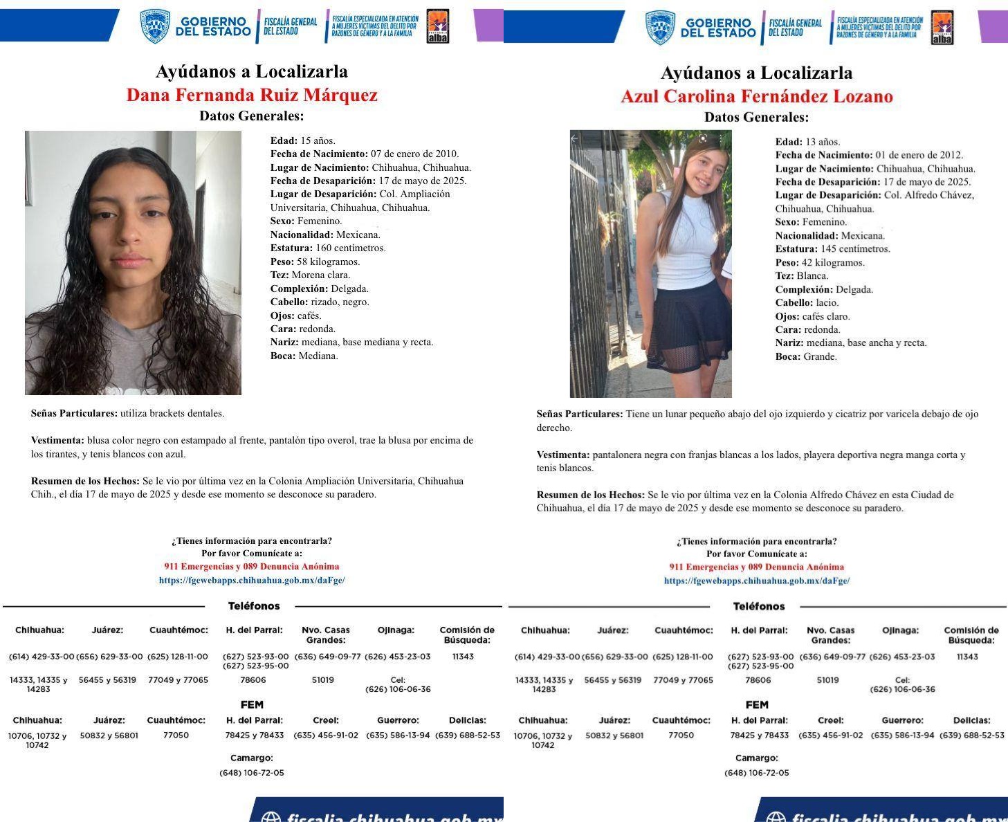 Noticias, Chihuahua.- La desaparición de dos menores de edad ha encendido las alertas en la ciudad de Chihuahua, luego de que las adolescentes Dana Fernanda Ruiz Márquez, de